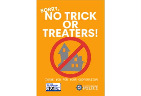 | If you're heading out trick-or-treating tonight, please be respectful. If a house isn't decorated or has a 'No trick or treaters' poster displayed, it's best to skip it and try another and there may be a host of reasons why people are choosing not to celebrate. Remember always be kind, stay safe and have fun! Let’s make Halloween enjoyable for everyone! You can download our official poster here: westyorkshire.police.uk/halloween