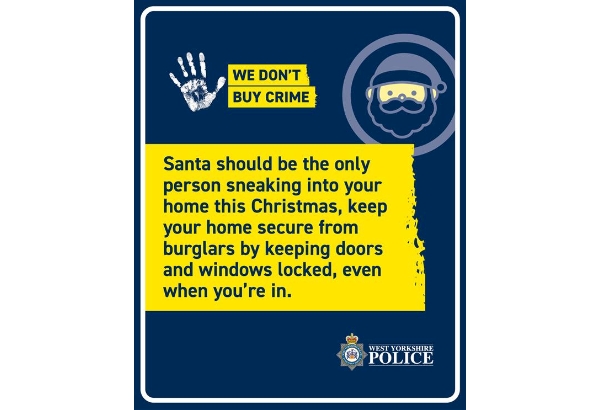 Remove all valuables and presents from vehicles, where possible remove presents from window view and turn on lights, timer switches and house alarms if you have one. Read more about how you can keep your home secure this Christmas: www.westyorkshire.police.uk/burglary